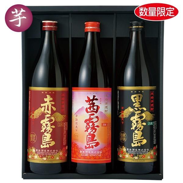 芋焼酎 酒 詰め合わせ 送料無料 霧島酒造 霧島3本飲み比べセット 黒霧島・赤霧島・茜霧島各900ml×1本 黒霧島:霧島酒造の創業者、江夏吉助が大正5年に初蔵出しした黒麹仕込みの本格芋焼酎です。 赤霧島:「ムラサキマサリ」を使用し、従来の「黄金千貫」製の本格焼酎とはひと味違う、味わいの芋焼酎です。 茜霧島:明るく色鮮やかなオレンジ芋「タマアカネ」が原料。甘くフルーティーなコクとまるみを感じる彩り豊かな味わいが特徴です。 【ご注意】 ・こちらの商品は、ギフト対応は承っておりませんのでご注意下さい。 ・のし、包装のご要望もお受けしておりません。 ・無包装にてお届けいたしますため、商品の箱の上に配送伝票が直貼りとなります。