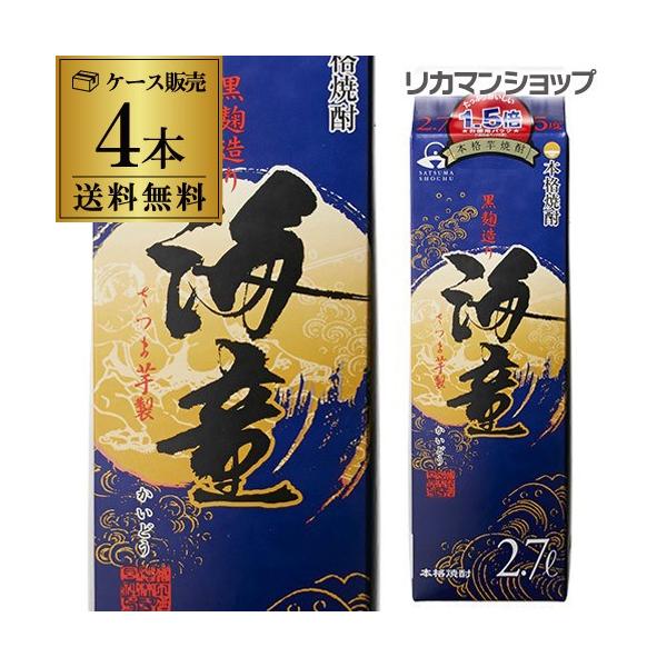 最安値に挑戦 焼酎 芋焼酎 送料無料 海童25° 黒麹芋焼酎 2.7L 2700ml×4本 ケース販売 いも 濱田酒造 いも焼酎 紙パック RSL