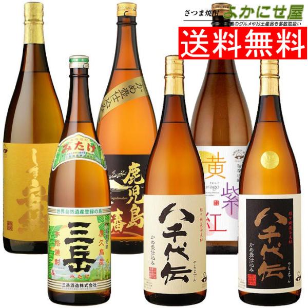 プレミアム焼酎【三岳】や人気の【八千代伝(白)・(黒)】など 鹿児島自慢の名酒を品ぞろえしました。 数量限定・送料もコミコミですので、 この機会に本格芋焼酎の飲み比べを、是非どうぞ♪ セット内容 ■三岳 1800ml 25% 芋・米麹 三岳酒造 ■八千代伝(白) 1800ml 25% 芋・米麹 八千代伝酒造 ■八千代伝(黒) 1800ml 25% 芋・米麹 八千代伝酒造 ■しま安納 1800ml 25% 芋・米麹 高崎酒造 ■黄紫紅 1800ml 25% 黄金千貫・紫芋・紅芋・米麹 さつま無双 ■鹿児島藩 1800ml 25% 芋・米麹 三和酒造 こちらの商品は大変好評につき、数量限定となります。 メルマガ登録で、鹿児島の本格芋焼酎からお土産品まで お得な最新情報をいち早くお届けいたします^