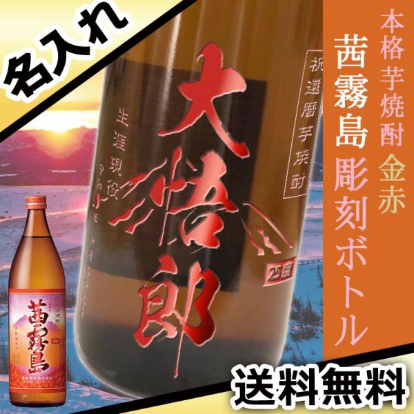オリジナル名入れ彫刻で、思い出を刻む [ 本格焼酎 茜霧島 ] 誕生日プレゼントなど大切な記念日におすすめ。 サプライズギフトに世界にひとつだけのこだわり彫刻ボトルを贈りましょう! 本格芋焼酎「茜霧島」のラベルデザインをアレンジした遊び心たっぷりの彫刻デザイン! 更に、キラキラ輝く赤色の加工が高級感を演出します。 飲んでも良し、飾っても良し、様々な用途に喜んでいただけます。 キラッと光るうまさ、フレッシュではなやかな香りには、 陽気さを感じさせる彩りある魅力が秘められています。 ◆商品スペック 容量:900ml 酒類:本格焼酎 原材料:さつまいも(九州産)・米こうじ(国産米) アルコール度数:25度 様々な用途に・・・ 誕生日 結婚祝い 還暦 お中元 長寿 入学 就職 卒業 退職 引っ越し 新築 企業・店舗用・表彰品・記念品・ノベルティ 父の日 母の日 敬老の日 クリスマス